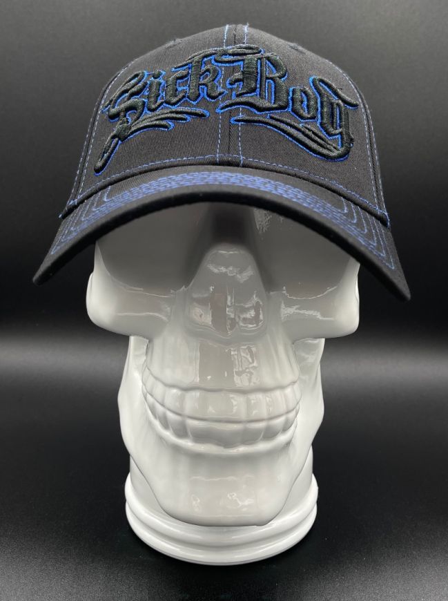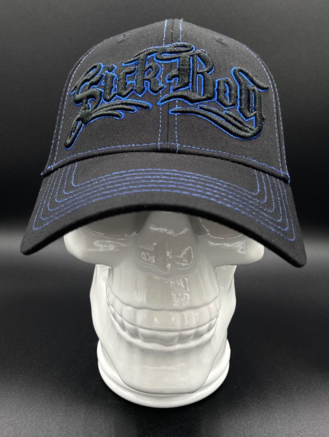 Sick Boy Blue Z fitted hat has 3D embroidery on front and SB embroidered on the back of a Sick Boy brand fitted hat.