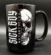 Sick Boy Faded Skull Coffee Cup. Printed both sides on a glossy black 16oz coffee cup.