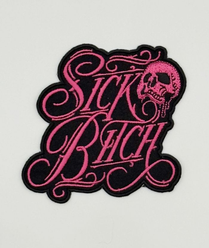 Sick Bitch Pink Skull Patch. 3.5" wide X 4" tall