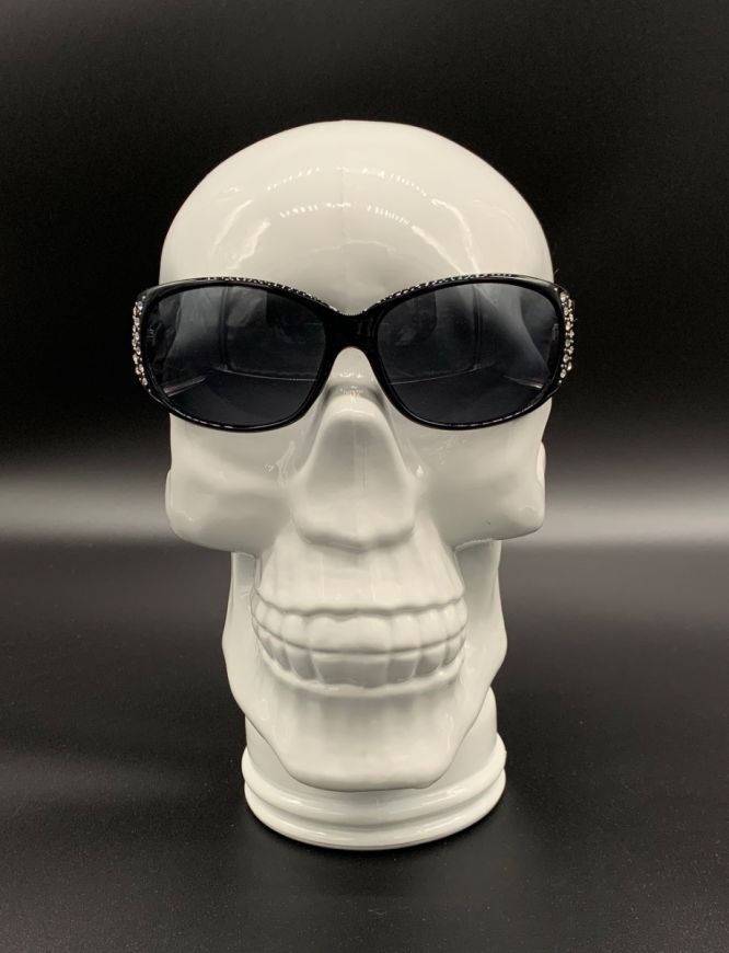 Sick Bitch rhinestone sunglasses with Sick Bitch printed on both arms (temples) and rhinestones.