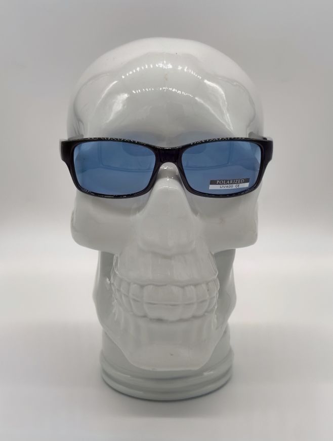 Polarized lens, raised chrome lettering on the arm, light weight.
