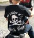 Sick Boy Motorcycles black t-shirt with "My Daddy is a Sick Boy" and skull print. This t-shirt is made of 100% heavyweight cotton. Uni-sex design.Small sizes 2T, 4T, 6T are printed full front only. Back print does not fit on small sizes.