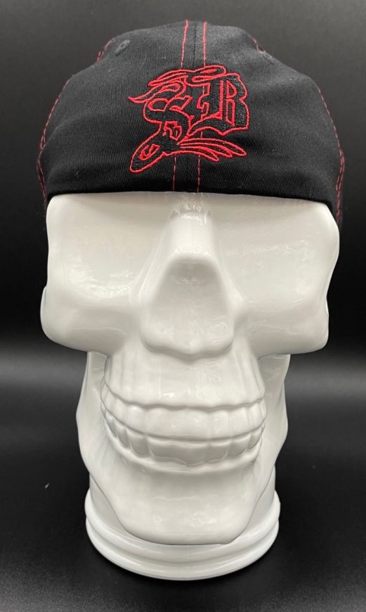 Sick Boy Motorcycles Red Z black baseball cap with "Sick Boy" on the front and "SB" on the back.