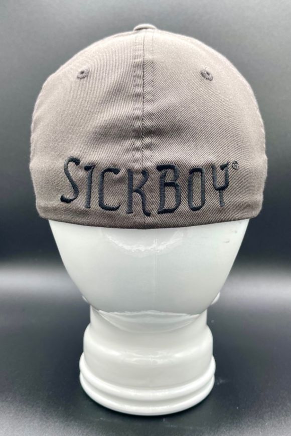 Sick Boy Grey skull fitted baseball cap with skull embroidered on front and "Sick Boy" embroidered on back.