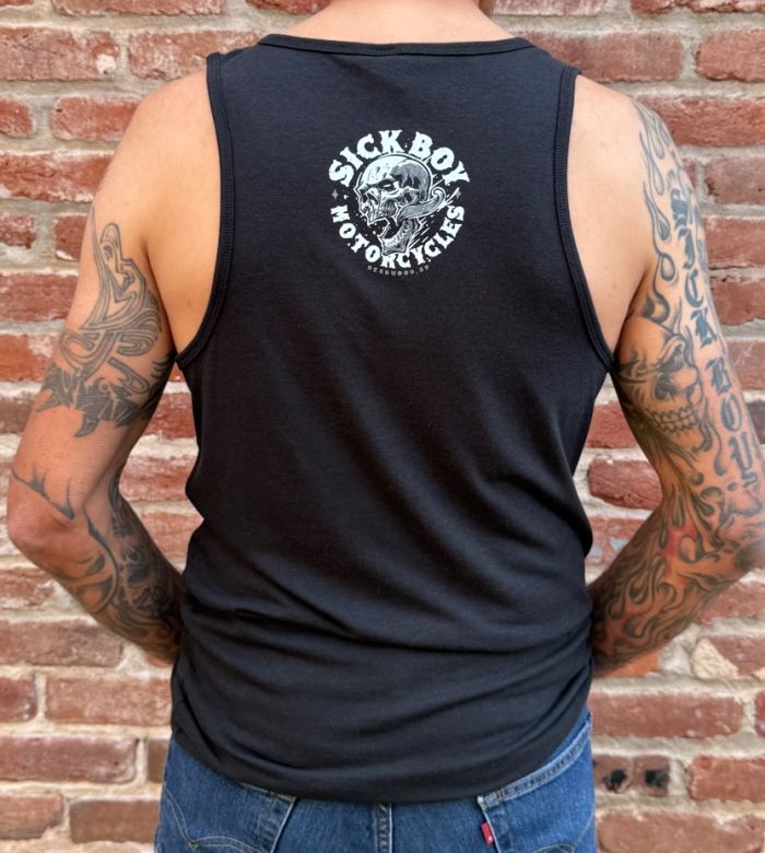 Black Sick Boy screaming skull tank top. Printed front and back on a 100% pre shrunk cotton tank.