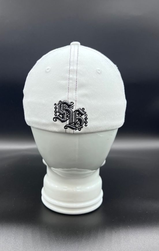 White Sick Boy Flat Fitted Hat. 3D embroidery wraps around the hat. S/M Fits 6 3/4" - 7 1/4" L/XL Fits 7 1/8 - 7 5/8"