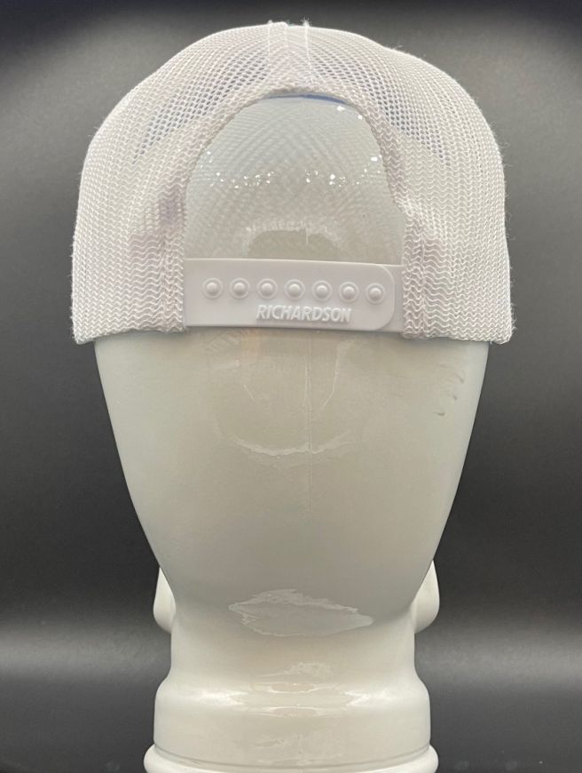Sick Bitch curved pink and white snapback hat. Embroidered front only on a "Richardson" brand snapback trucker style cap.